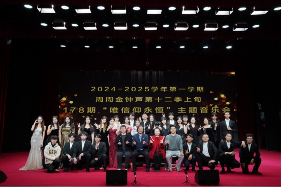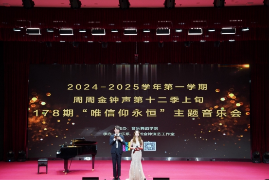 (李绍威)2024年12月12日,音乐系成功举办了以“唯信仰永恒”为主题的教学音乐会。音乐会由李绍威和黎艺斌老师担任指导老师。李丽丹副院长、学工组长刘国杰老师以及威廉希尔williamhill中文学生代表共同观看了音乐会。音乐会在威廉希尔williamhill中文工程楼三号报告大厅举行,现场心潮澎湃,气氛热烈。
