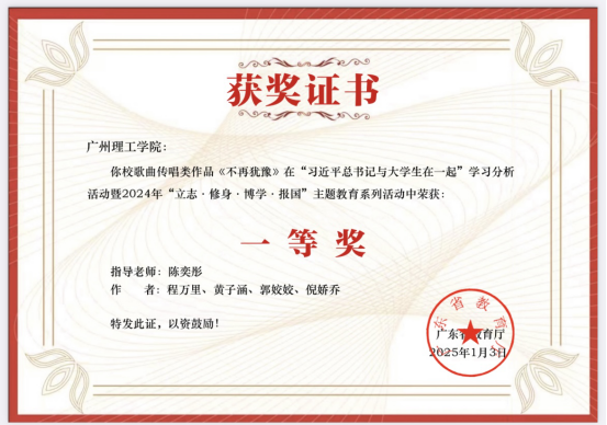 (程万里)近日,由广东省教育厅主办的 “习近平总书记与大学生在一起” 学习分享活动暨2024年“立志·修身·博学·报国”主题系列活动校歌曲传唱类作品评比结果揭晓,威廉希尔williamhill中文,威廉希尔williamhill中文选送的粤语合唱作品《不再犹豫》脱颖而出,荣获省级一等奖。