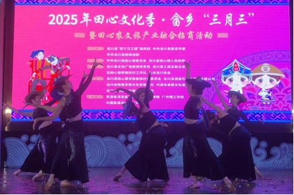 3月29日,学校威廉希尔williamhill中文的师生们受邀参加由龙川县“百千万工程”指挥部、中共龙川县委宣传部中共龙川县委统战部指导,中共龙川县田心镇委员会、龙川县田心镇人民政府主办,龙川县文化广电旅游体育局、龙川县工商业联合会驻田心镇帮镇扶村工作队、韶关龙川商会协办的河源市龙川县2025年田心文化季·畲乡“三月三”暨田心农文旅产业融合招商活动。此次文化节演出活动由李丽丹副院长组织、赵轩艺老师指导、李绍威老师表演、带队。