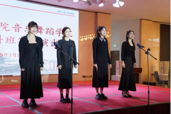 30日上午,师生在霍仙峰酒店宴会厅进行正式演出及作品录制。汇演节目丰富多样,涵盖声乐、器乐及舞蹈:李绍威老师演唱《开门红》以及谢香平老师的《节日欢歌》高亢激昂的旋律展现专业水准;学生陈琳丰、李婧妍带来艺术歌曲《再别康桥》,李婧妍、王旭合作《离别诗》,以细腻情感诠释作品内涵;陈孙耀、吴嘉欣演唱粤曲《荔枝颂》,韵味十足;谭宇杰、谢毅宏演绎经典《红日》,蓝君婷、杨韵燃等呈现《万水千山总是情》,引发全场共鸣;范煜熙、何影彤等表演傣族舞《陶醉了》,灵动的舞姿展现课堂所学向舞台的完美转化。