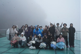 3月29日中午,师生抵达霍山风景区,冒雨徒步攀登至玻璃观景台。山间云雾缭绕,细雨朦胧,为实践活动增添了别样意境。师生们即兴开展艺术展演,谢香平老师以一《节日欢歌》点燃现场氛围,学生们则献上《山歌唱出好兆头》、《红日》《万水千山总是情》等声乐作品,悠扬的歌声与自然山水交融,展现了艺术与自然的和谐共鸣。