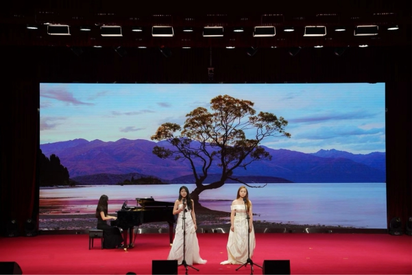 音乐会在女声小组演唱的河南民歌《卖扁食》中热闹开场,表演者们用欢快活泼的歌声,将民间有趣丰富的市井生活生动搬上舞台,瞬间点燃现场气氛。整场音乐会曲目丰富多样,既有融合钢琴和大提琴伴奏的古诗词艺术歌曲《锦瑟》,以悠扬婉转的旋律诠释了李商隐笔下的朦胧诗意,也有反映年轻人内心情感世界的流行歌曲《洋葱》。借咏牡丹花赞誉贵妃美貌、描绘宫廷生活的《清平调三章》,尽显古典雅致;江南风情的民歌小组唱《线装女儿心》,用轻柔的声线勾勒出江南女子的温婉柔情。此外,赖艺凤带来的新疆风情民歌《红玫瑰》同样令人眼前一亮,生动展现了娇媚女子勇敢追逐爱情的形象。用重庆方言演唱的民歌《螃蟹调》诙谐有趣,充满浓郁的地方特色;反映岭南荔枝文化的粤语民歌《荔枝颂》则以独特的粤语唱腔,展现出岭南地区的风土人情。 最后音乐会在热闹欢快的流行小组唱《像你这样的朋友》中圆满结束,热烈的节奏与真挚的情感,为这场音乐之旅画上完美句点。