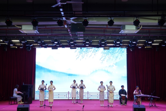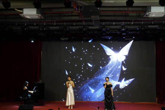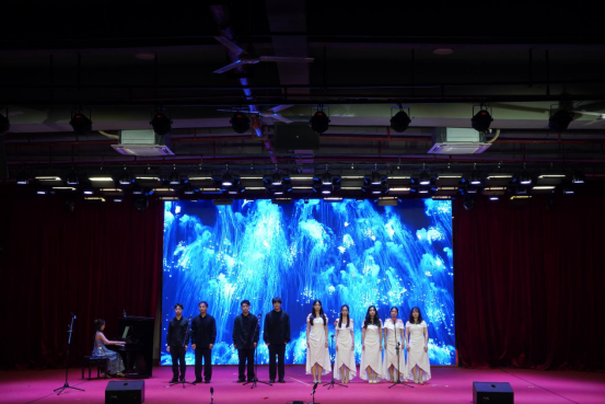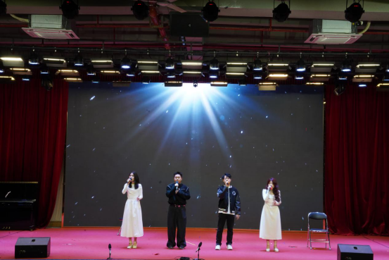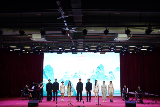 音乐会在女声独唱《花儿为什么这样红》中拉开帷幕,杨贝贝以她那清新自然的嗓音,将歌曲中对美好生活的向往和对自然的赞美演绎得淋漓尽致,配合着李宗楠的小提琴和周建的钢琴伴奏,旋律优美动听,瞬间将观众带入了音乐的奇妙世界。随后,女声小组唱《苏慕遮》登场,朱诗晴、黄韵静、杨影文、朱金慧、陈洁丽、钟美婷等多位女声歌手联袂献声,在林真真古筝、刘静怡舞蹈的助阵下,古典韵味十足的歌声如行云流水般流淌而出,展现出歌声与舞蹈完美融合的艺术魅力,使观众仿佛置身于诗意盎然的画卷之中。舞台剧《隐稳作秀》《我的人生规划》《声动人心》依次上演,演员们用精湛的表演技艺,生动地刻画出一个个鲜活的人物形象,通过精彩的剧情和巧妙的舞台调度,将复杂的人性、理想与现实的纠葛展现得入木三分,引发观众的情感共鸣,现场不时爆发出热烈的掌声。在器乐表演方面,器乐重奏《天山之歌》由刘静怡、吴倩儿等带来,古筝、中阮与非洲鼓的组合新颖独特,旋律欢快活泼,仿佛带领观众领略天山的壮美风光;器乐合奏《自由探戈》在古筝、小提琴、箱鼓和黎宇轩等的完美配合下,展现出探戈音乐的激情与活力,节奏明快的旋律让观众沉浸其中,感受着音乐的律动。歌舞剧《声声慢》则融合了多种艺术元素,陈冽、袁箫等表演者通过优美的舞姿和深情的演唱,将宋词的意境与现代舞蹈相结合,抒发了细腻婉转的情感,让观众在欣赏舞蹈之美的同时,也领略到了传统文化的独特魅力。小组唱《逆光》《上春山》《世界赠予我的》同样精彩纷呈,成员们默契十足,和谐的和声与富有感染力的歌声相互交织,传递出青春的活力与梦想的力量。此外,钢琴独奏《Memory of you》和舞台剧《城南送别》也以其独特的艺术风格和深情的演绎,为音乐会增添了浓厚的文化氛围,让观众在欣赏音乐的同时,也能感受到艺术的多元性和包容性。
