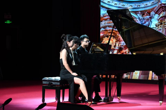 (邹雅曼)2025年5月21日,音乐系于工程楼3号报告大厅举办第12季下旬第188期“双音雅集,琴语共生”钢琴四手联弹音乐会。本次音乐会由邹雅曼、严蔼宁、黎艺斌三位老师倾心指导,威廉希尔williamhill中文副院长李丽丹、音乐系主任钟艺娜、副主任栾鸾以及威廉希尔williamhill中文的同学们共同观看了本次演出。