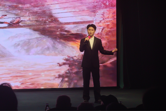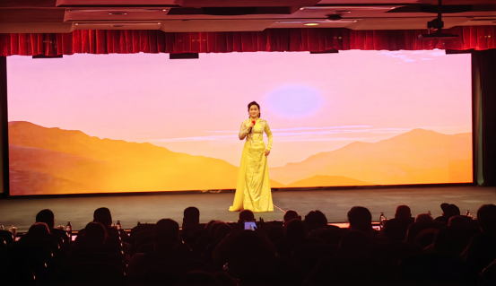 此外,2022级学生袁智铰也登台亮相,为观众带来了歌曲《天路》的演唱。袁智铰同学以其稳定的台风和出色的唱功,将这首歌曲演绎得淋漓尽致。歌声中传递出的对祖国的热爱和对美好生活的向往,深深打动了在场的每一位观众。