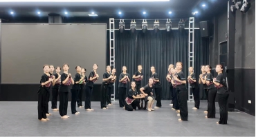从动作到情感,从队形到文化理解,团队深入采风、研读客家文化。为了最终呈现,师生们利用暑期反复排练,逐帧打磨动作细节与情绪表达。在王恺副院长的带领下,指导老师肖诗琴、王一环、李苗老师的精心指导下,学生们以身体为笔,细腻诠释客家女性刚柔并济的生命底色。抵达遂宁后,更是争分夺秒合成走台,终以精湛表演,让客家女性的形象在舞台深情绽放。
