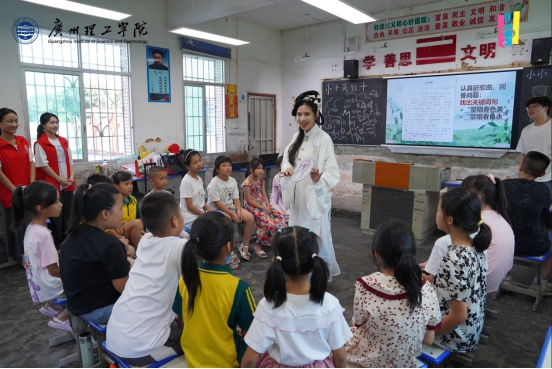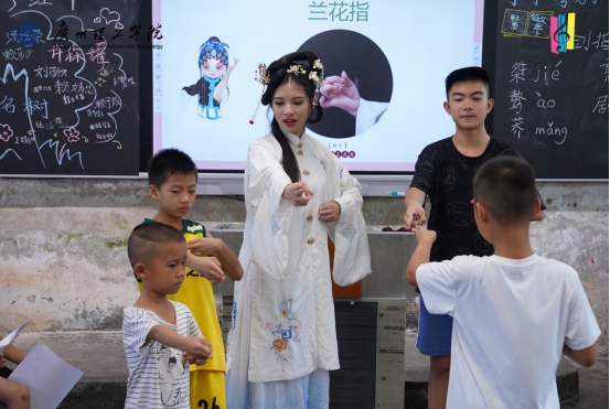 粤剧是广东省优秀的传统文化,为弘扬中华优秀传统文化,营造校园粤音文化氛围,“艺述戏音·美育童心”百千万工程突击队将粤音文化带进课堂,培养学生的戏曲素养,推进美育工作的发展。 “艺述戏音·美育童心”百千万工程突击队通过语言艺术与戏曲表演实践课程,引导当地学生体会粤音文化的魅力,促进粤音的传承与推广,在支教活动中展现青春风采从而为文化强国建设提供青春智慧。