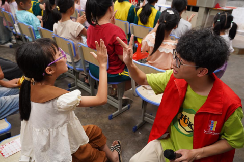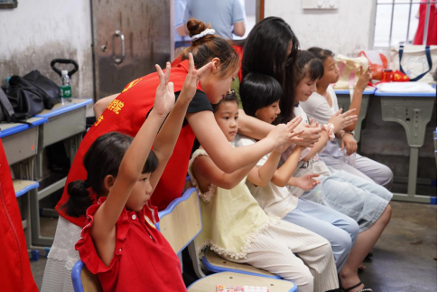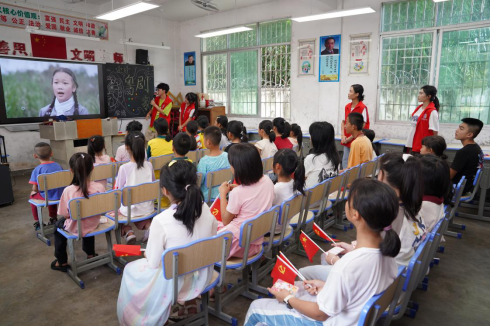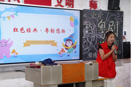 “艺述戏音·美育童心”百千万工程突击队通过与吴文广书记的交谈后,对爱国主题教育有了更深的体会。7月12日下午,突击队前往英红镇云岭小学开展“爱国主题教育”支教活动,威廉希尔williamhill中文党总支副书记全艳与项目指导老师罗圣砚一同走进我们支教课堂。