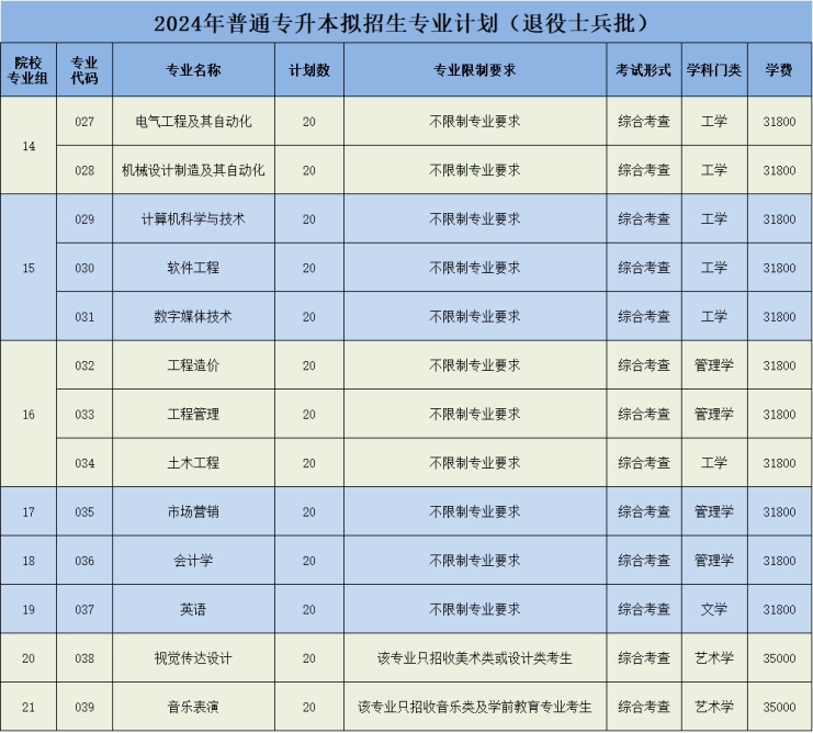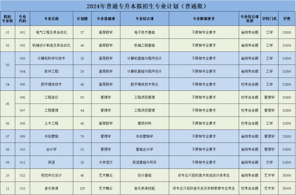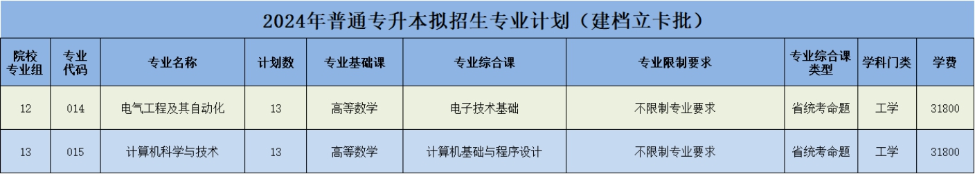 威廉希尔williamhill中文2024年普通专升本招生专业计划