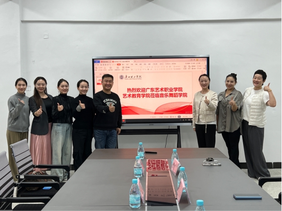 尹博文老师详细介绍了广东艺术职业学院舞蹈教育专业的教学模式和课程体系,特别强调了实践教学在舞蹈教育中的重要性。双方就如何结合现代技术手段提升舞蹈教学效果、如何加强学生的舞台表现力和创新能力进行了深入讨论。