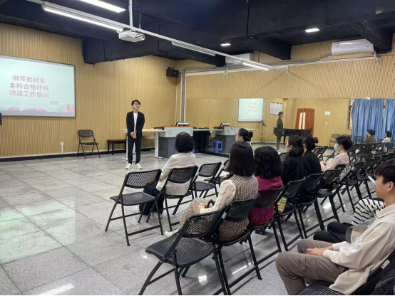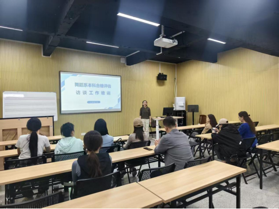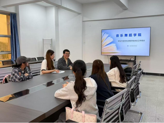 音乐系教研室和舞蹈系培训聚焦教师提问环节。在教研室主任和舞蹈系副主任的带领下,从课程设置、教学方法创新、实践教学开展到学生成果展示等方面进行梳理。通过回答访谈问题,教师们相互交流经验,明确在访谈中如何突出教学的亮点与成效,如特色课程建设、师生艺术实践获奖情况等,展现出扎实的教学功底与专业实力。